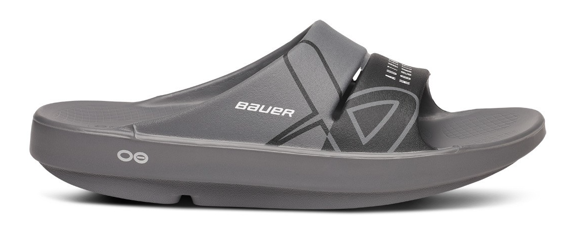Revitalize your recovery from the rink to the gym. The BAUER | OOFOS® Sport Slide features OOfoam™ technology that absorbs 37% more impact than traditional foam footwear as well as a supportive footbed design that reduces stress on your joints after hard-fought games and intense training sessions.