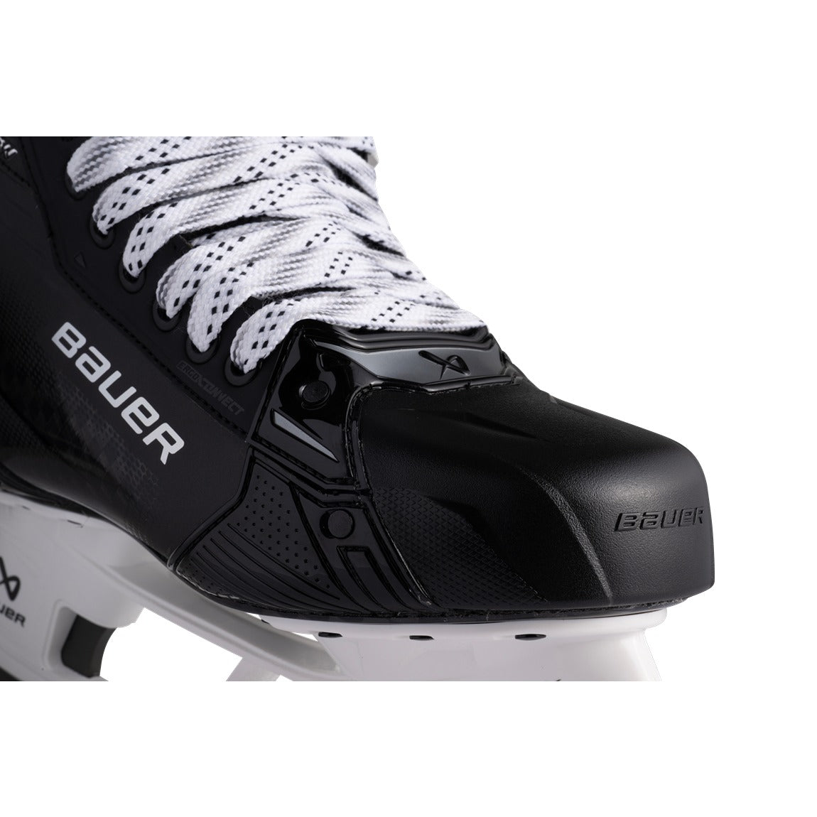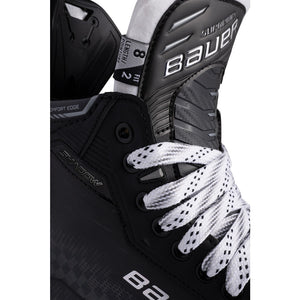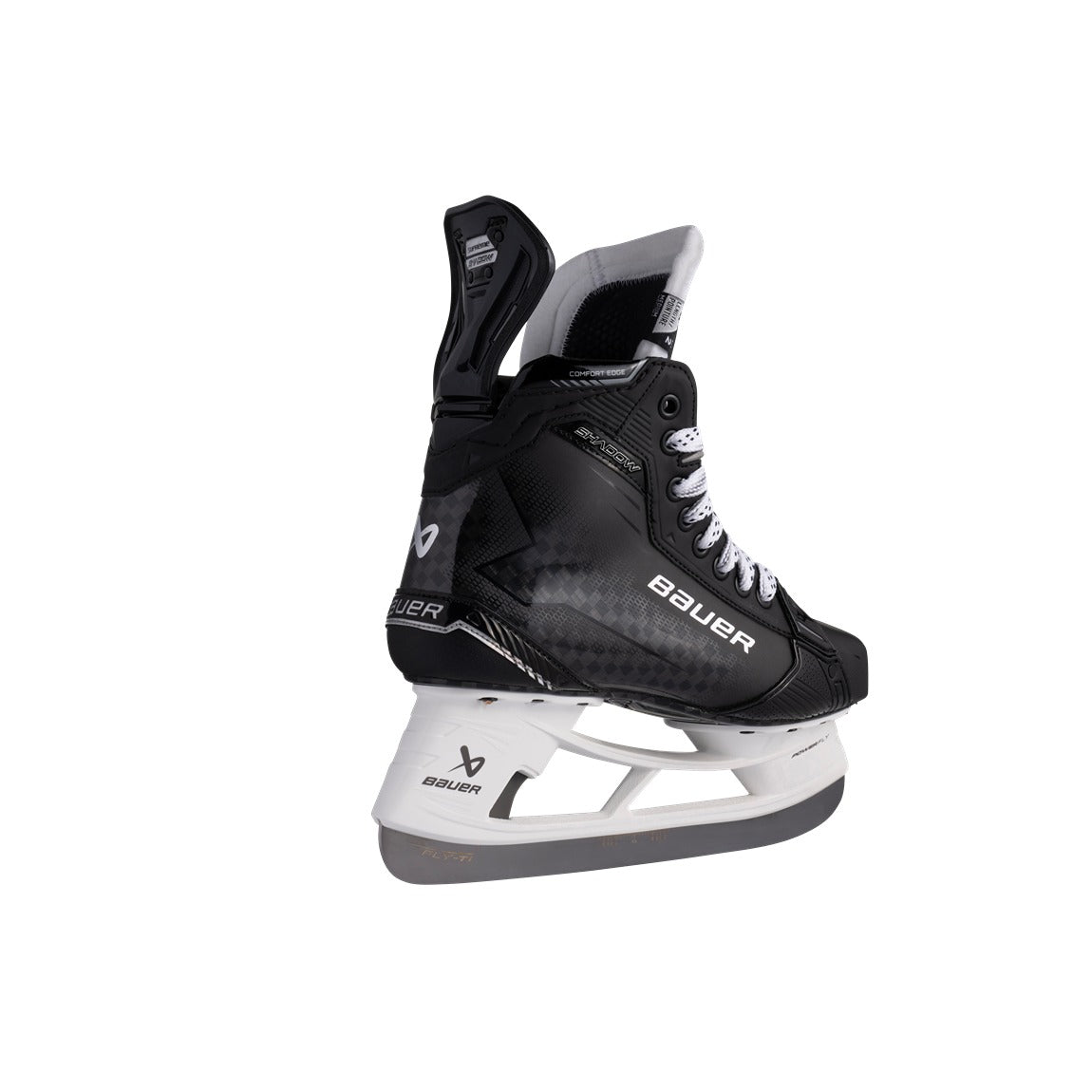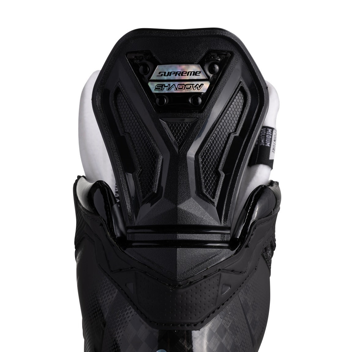 The SUPREME SHADOW skate delivers unparalleled power on the ice like never before. Designed for the modern power skater, the lower section of the SUPREME SHADOW skate incorporates stiffer materials to enhance energy generation and explosiveness, while the upper section features a more flexible and responsive material to maximize range of motion for game-changing deception—showcasing unmatched power and agility. Model 1063299.