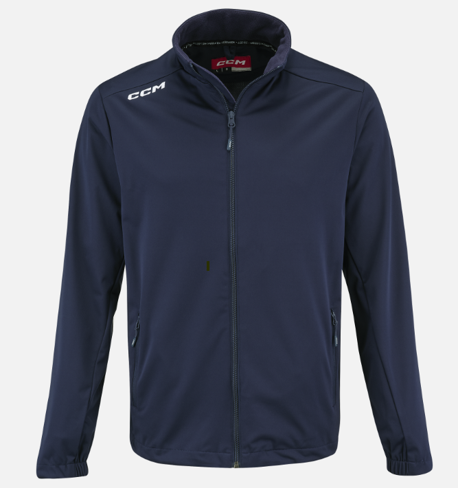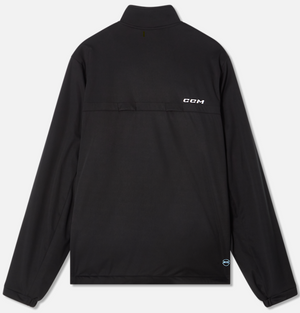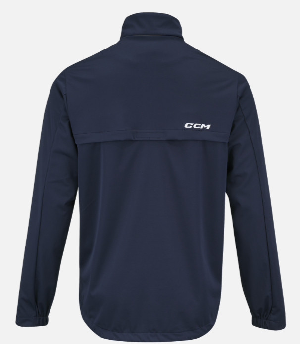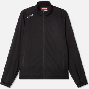 This lightweight rink suit jacket is crafted for optimal performance and sleek aesthetics. It incorporates breathable fabric with 4-way stretch and AER-TEC technology to enhance comfort and minimize noise from movement. This jacket delivers both utility and adaptability, featuring zippered side pockets, an elasticated hem and cuffs, and strategically placed interior zippers for straightforward customization. The 100% polyester shell, complemented by the embroidered CCM logo and ID label, presents a polished, professional appearance ideal for athletes seeking style and functionality.