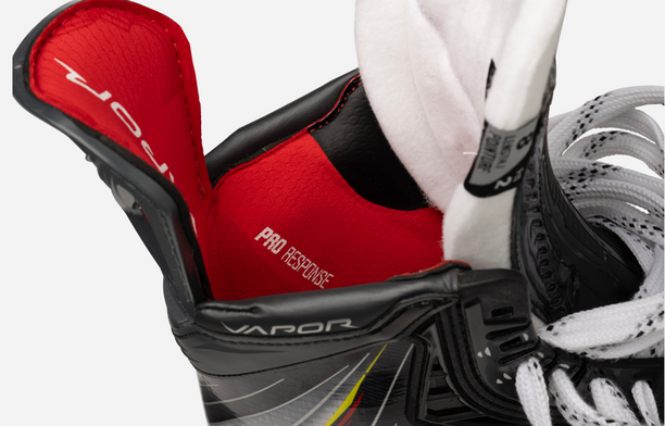 Unleash a new level of skating. VAPOR FLYPRO skates are engineered to help redefine your stride. Lightweight, elite-level tech keeps you quick and agile on your edges, and a combination of flexible and reactive materials help store and release more energy — helping you fly off the line at full speed.