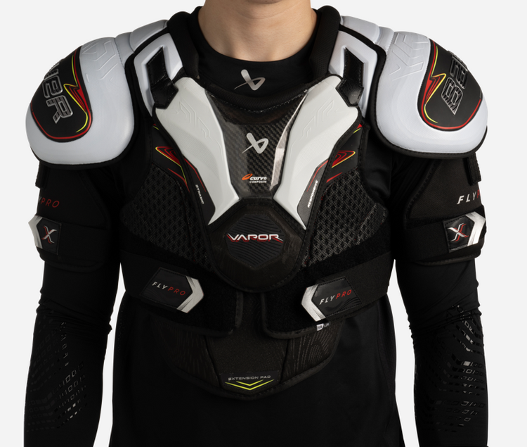 Elevate your protection with VAPOR FLYPRO Shoulder Pads. These pads feature exposed HYPERLITE foam for a stripped-down, athletic fit and lightweight CURV® composite for optimal protection from the game’s most